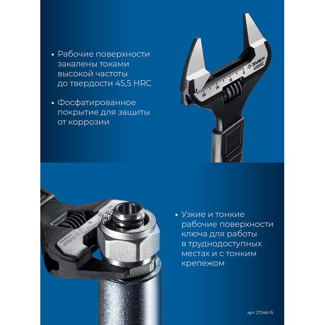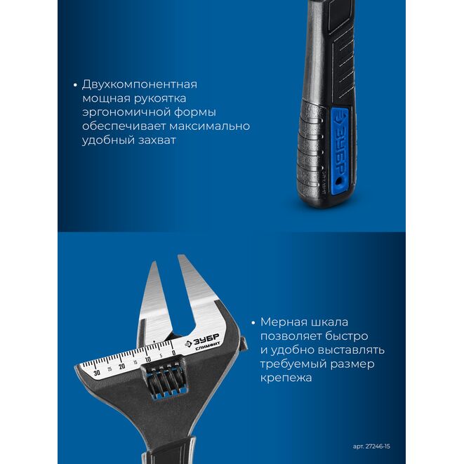 Ключ разводной ЗУБР 27246-15, предназначен для монтажа и демонтажа резьбовых соединений.Характеристики ЗУБР 27246-15: