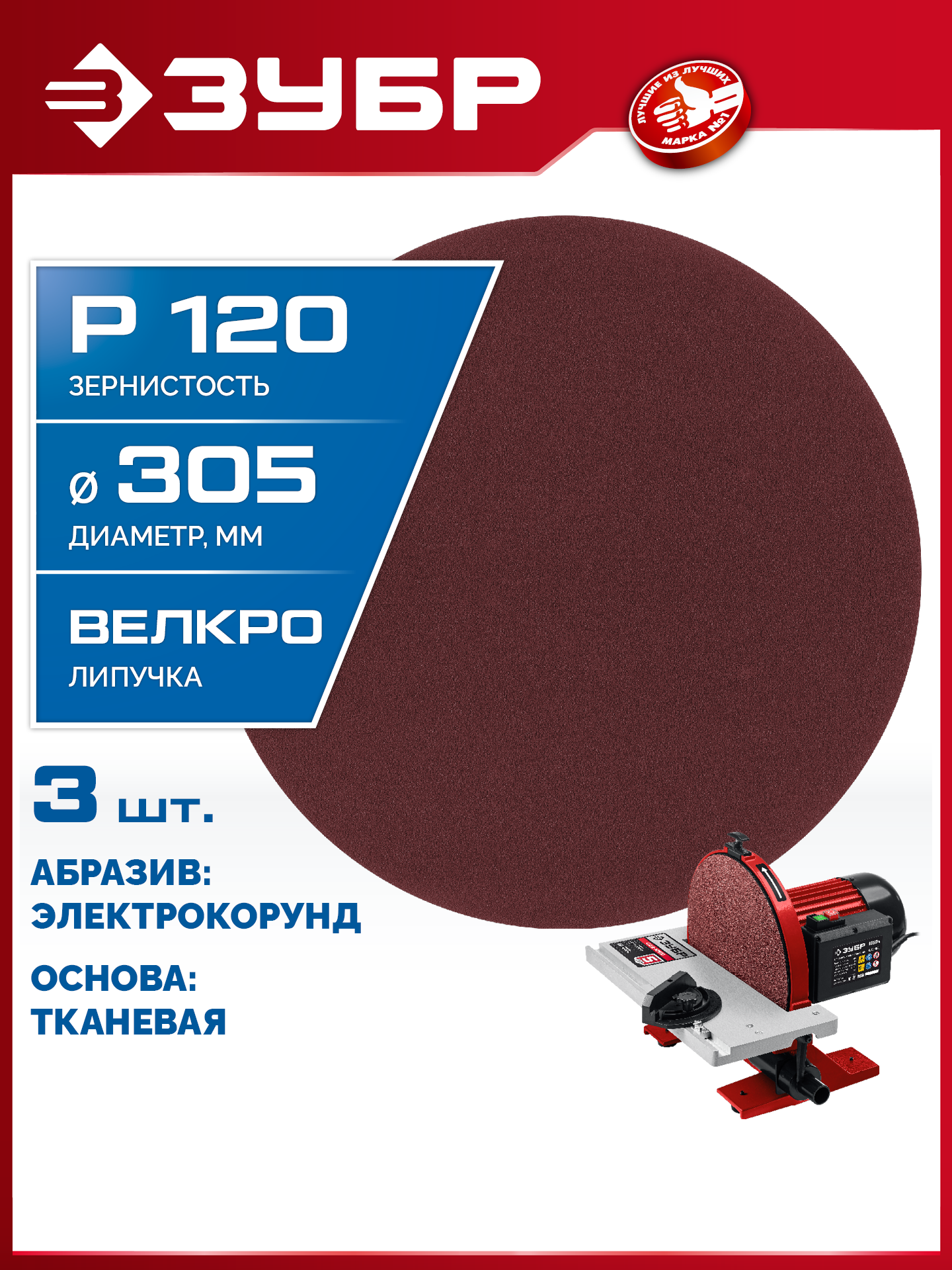 ЗУБР СШД-1050-К 305 мм, Р120, шлифовальный круг на липучке, 3 шт. (35671-120)