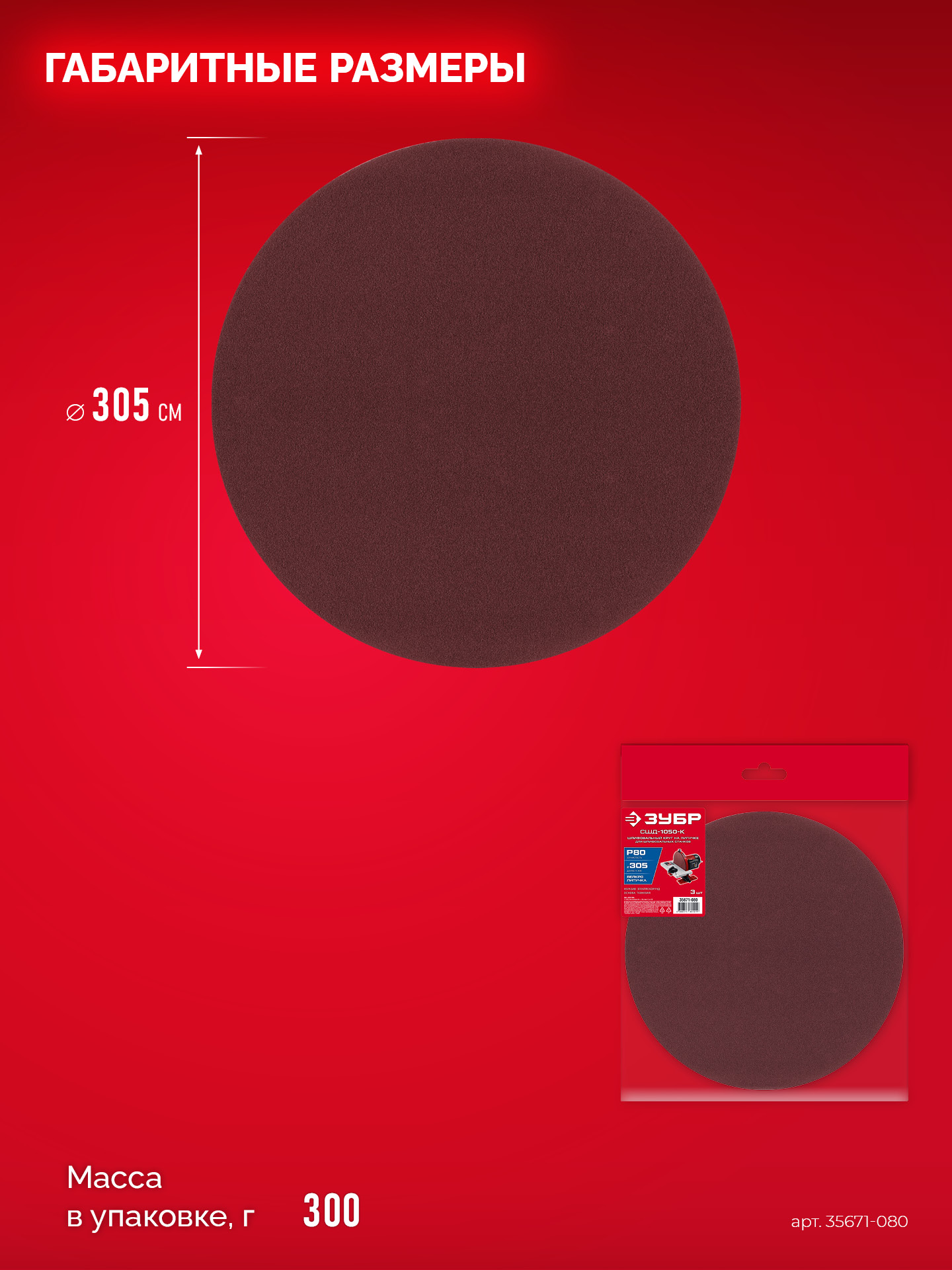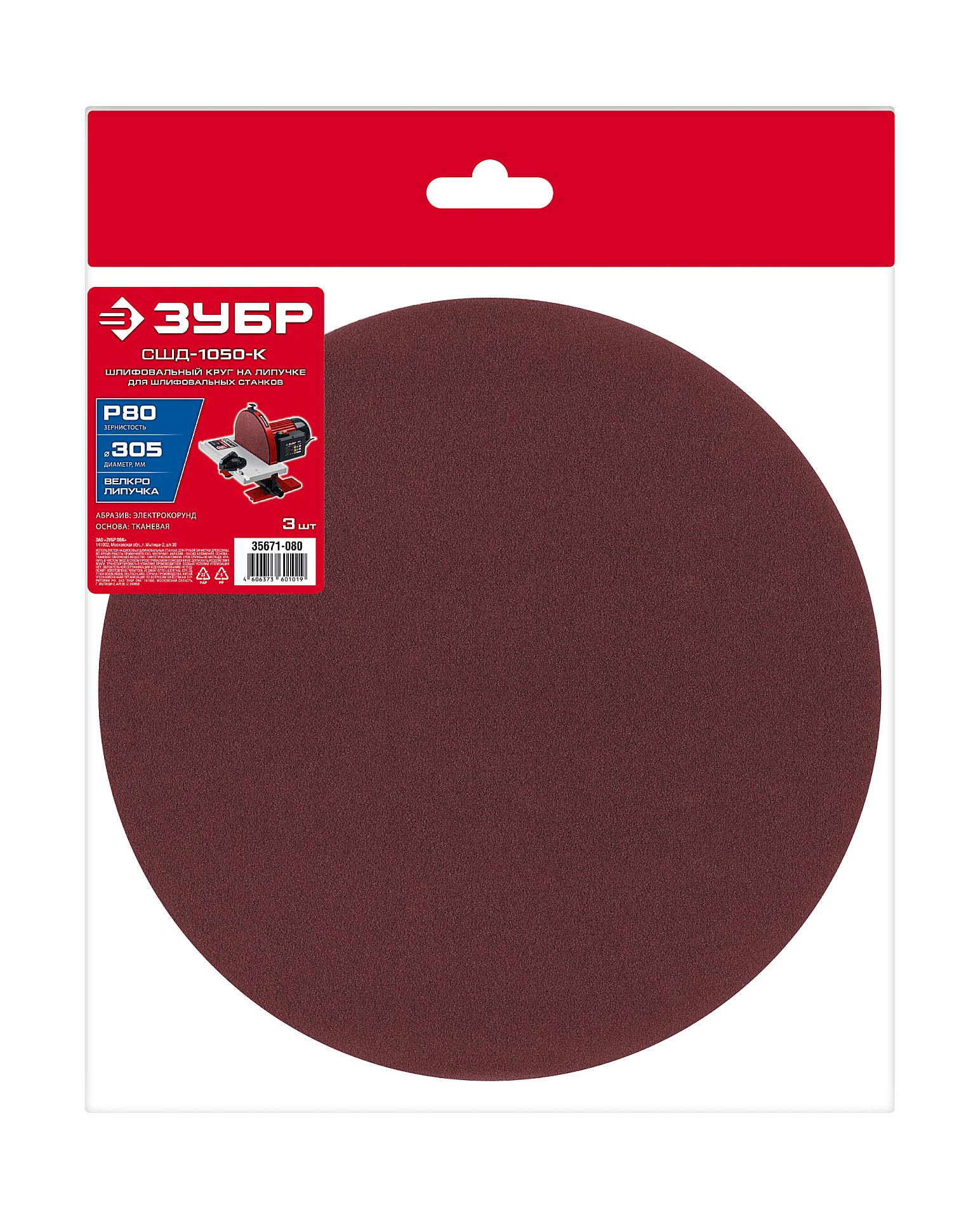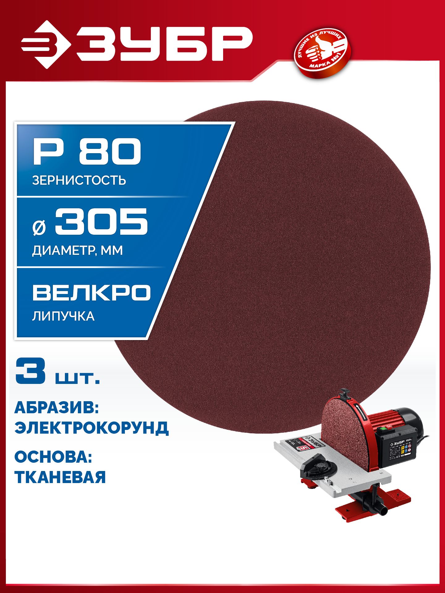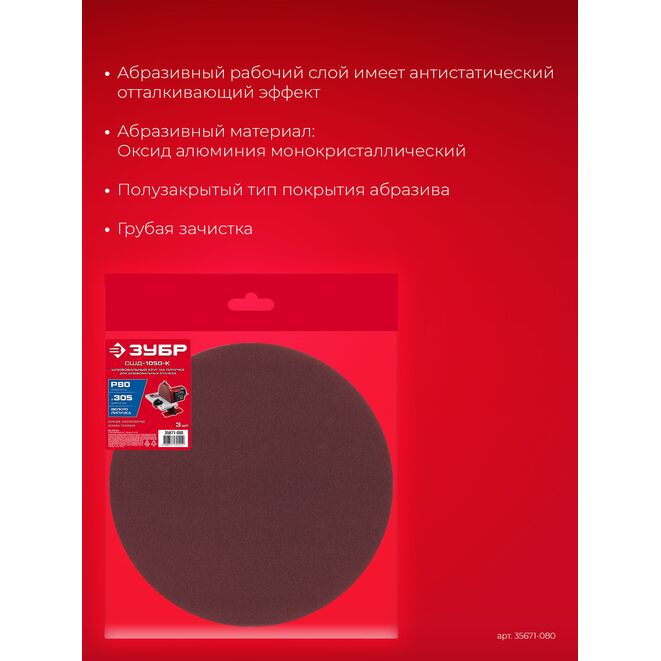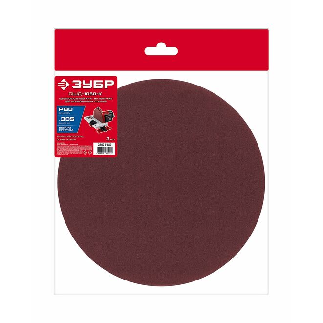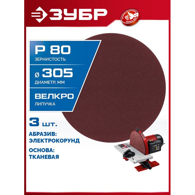 ЗУБР СШД-1050-К 305 мм, Р80, шлифовальный круг на липучке, 3 шт. (35671-080)