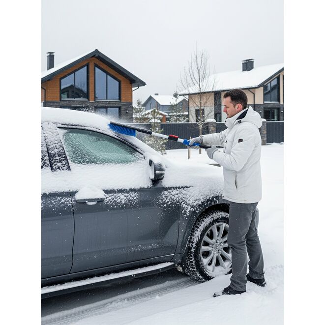Простая и надёжная телескопическая щетка со скребком от снега и льдаПрименение