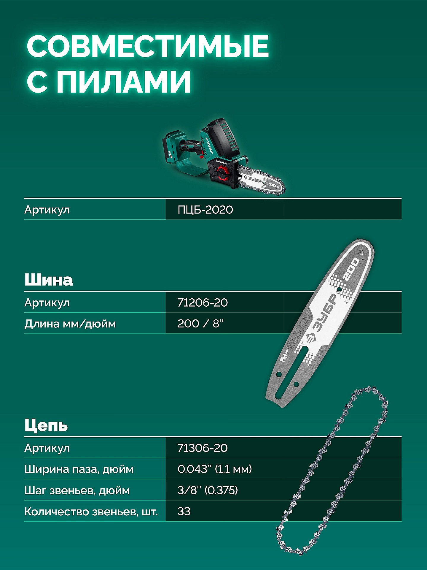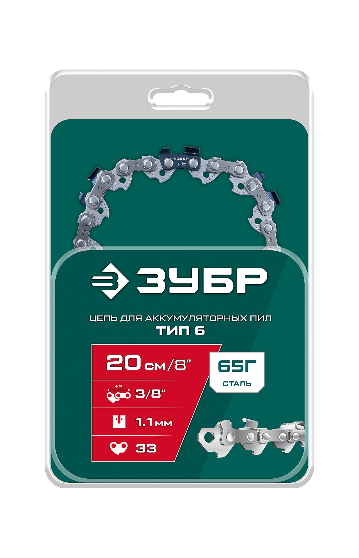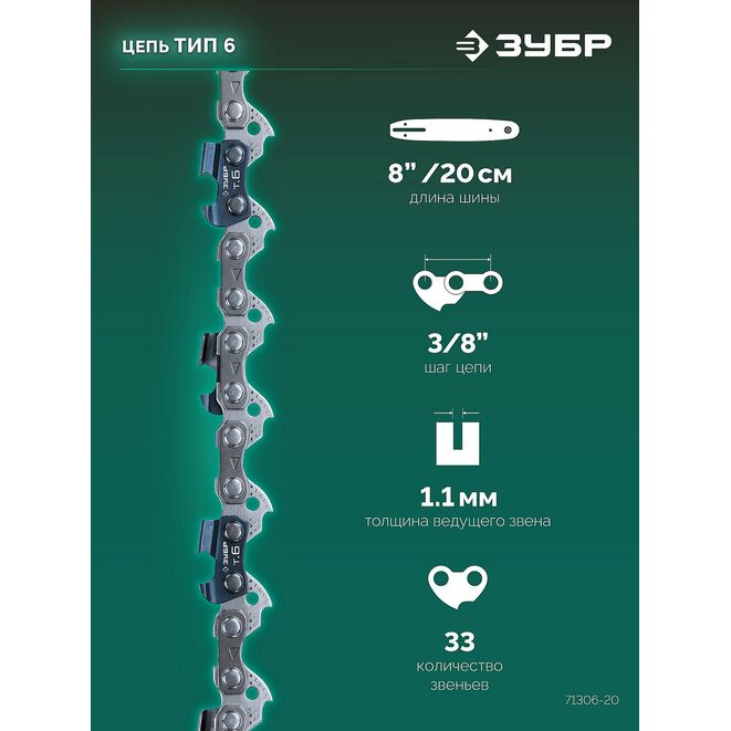 ЗУБР тип 6, 20 см, шаг 3/8", паз 1.1 мм, 33 звеньев, цепь (71306-20)