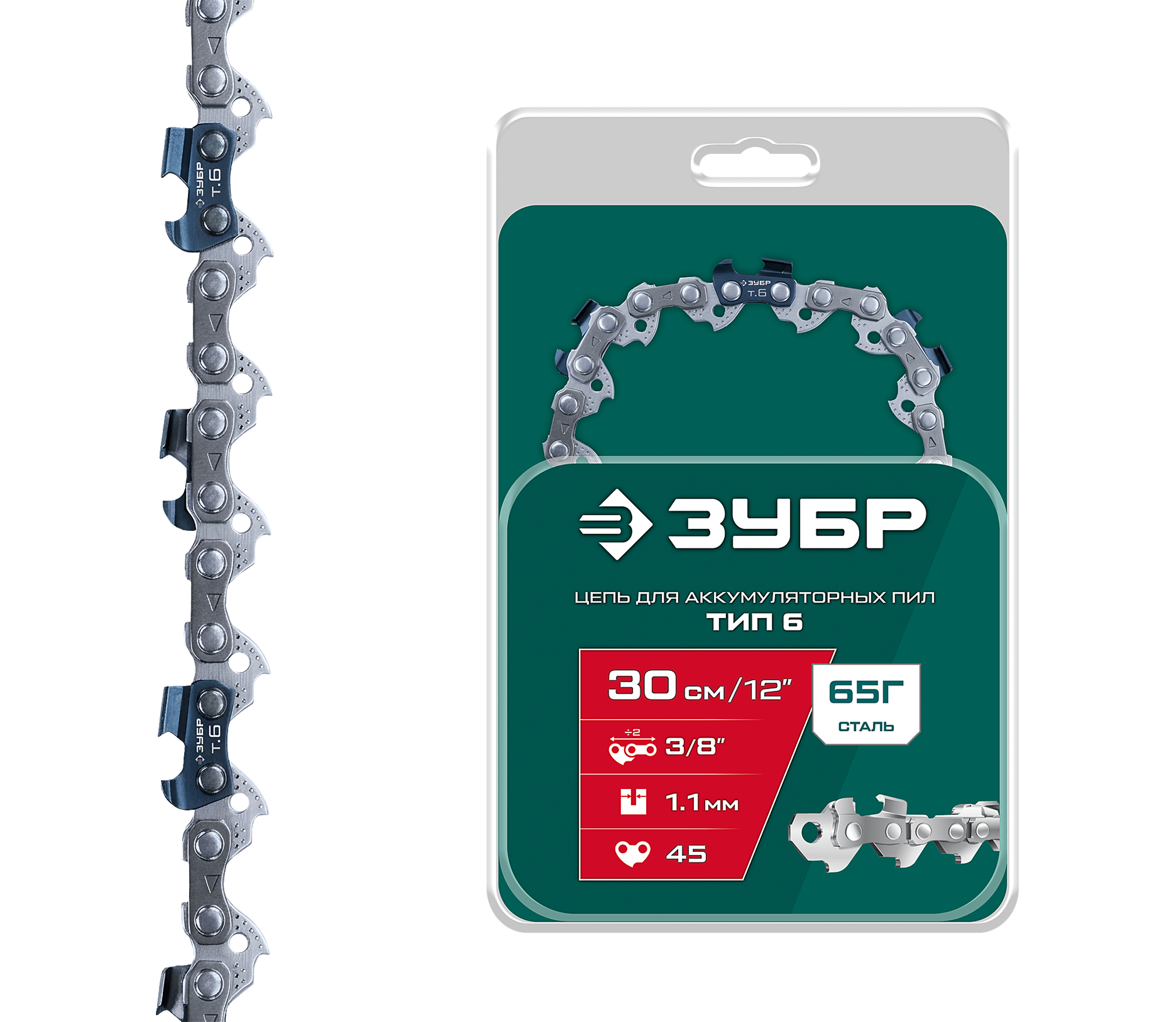 Принадлежности для ЗУБР тип 6, 30 см, шаг 3/8″, паз 1.1 мм, 45 звеньев, цепь (71306-30):