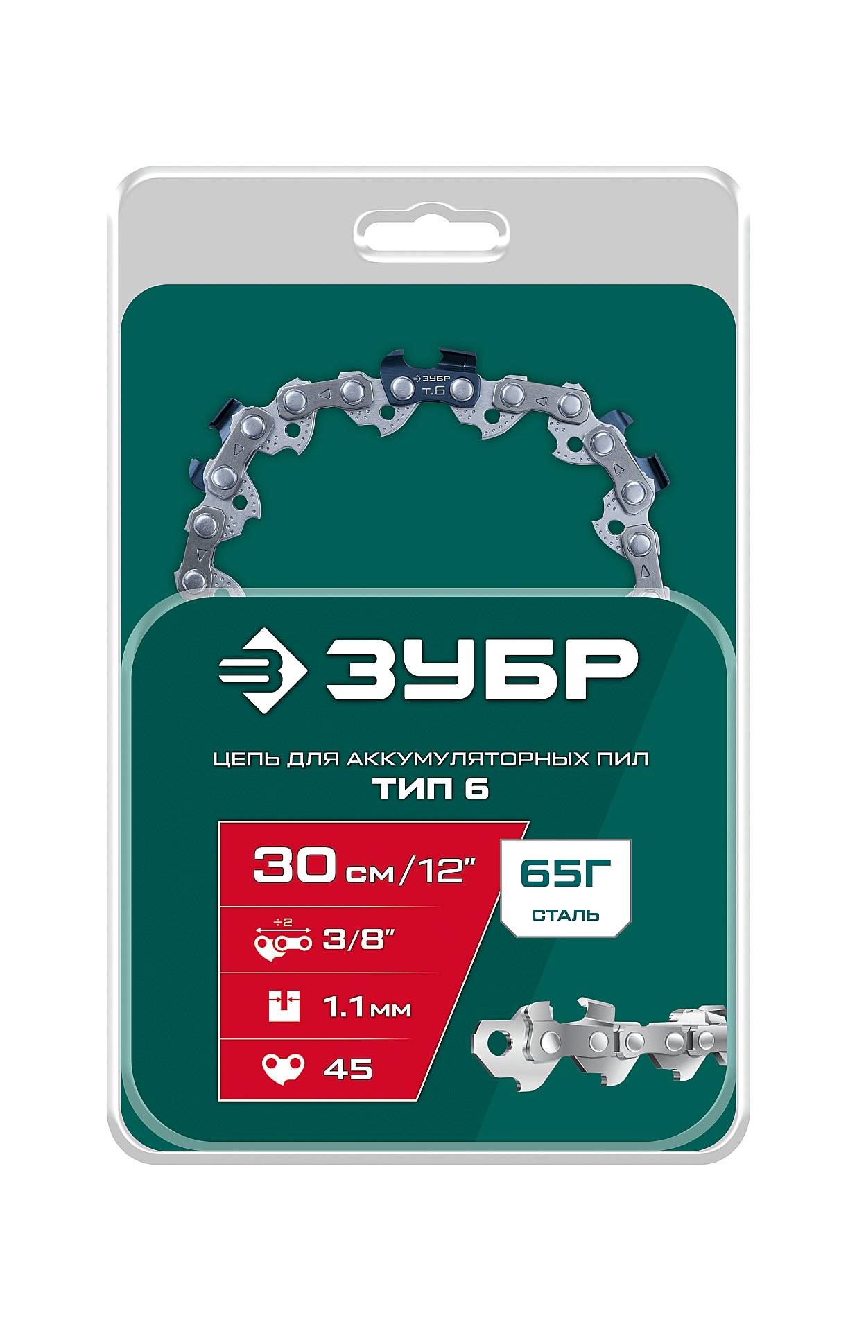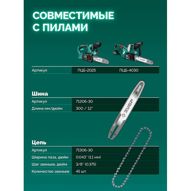 Принадлежности для ЗУБР тип 6, 30 см, шаг 3/8″, паз 1.1 мм, 45 звеньев, цепь (71306-30):