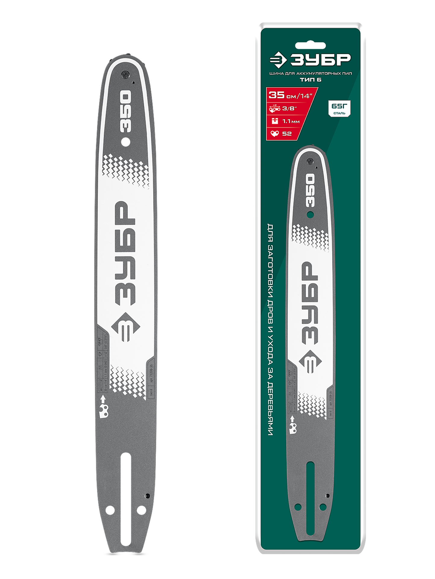Принадлежности для ЗУБР тип 6, 35 см, шаг 3/8″, паз 1.1 мм, 52 звена, шина (71206-35):