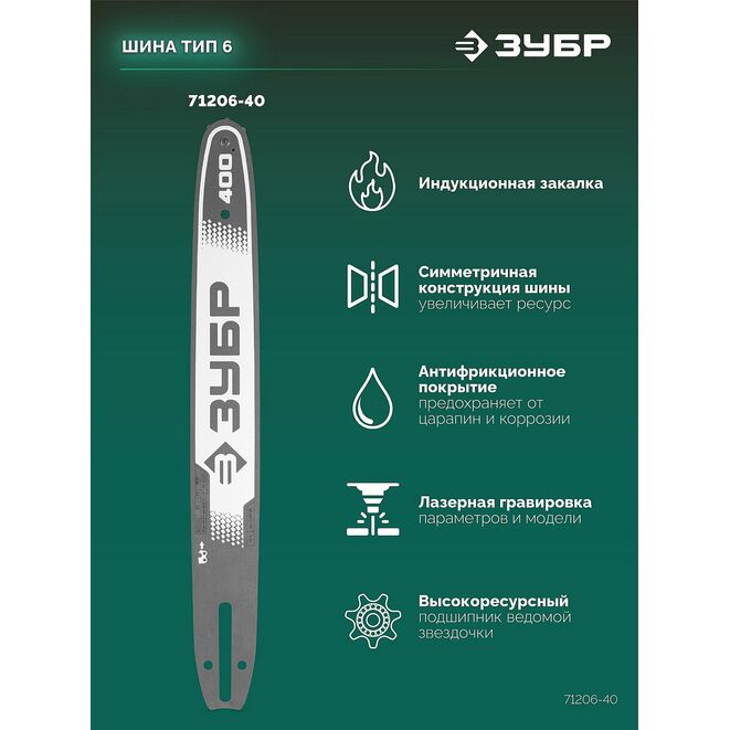 Шина ЗУБР 71206-40, предназначена для закрепления и направления цепи при выполнении пильных работ цепными пилами. Сталь высокого качества и точность размеров гарантирует долгий срок службы как самой шины, так и цепи.Характеристики ЗУБР 71206-40: