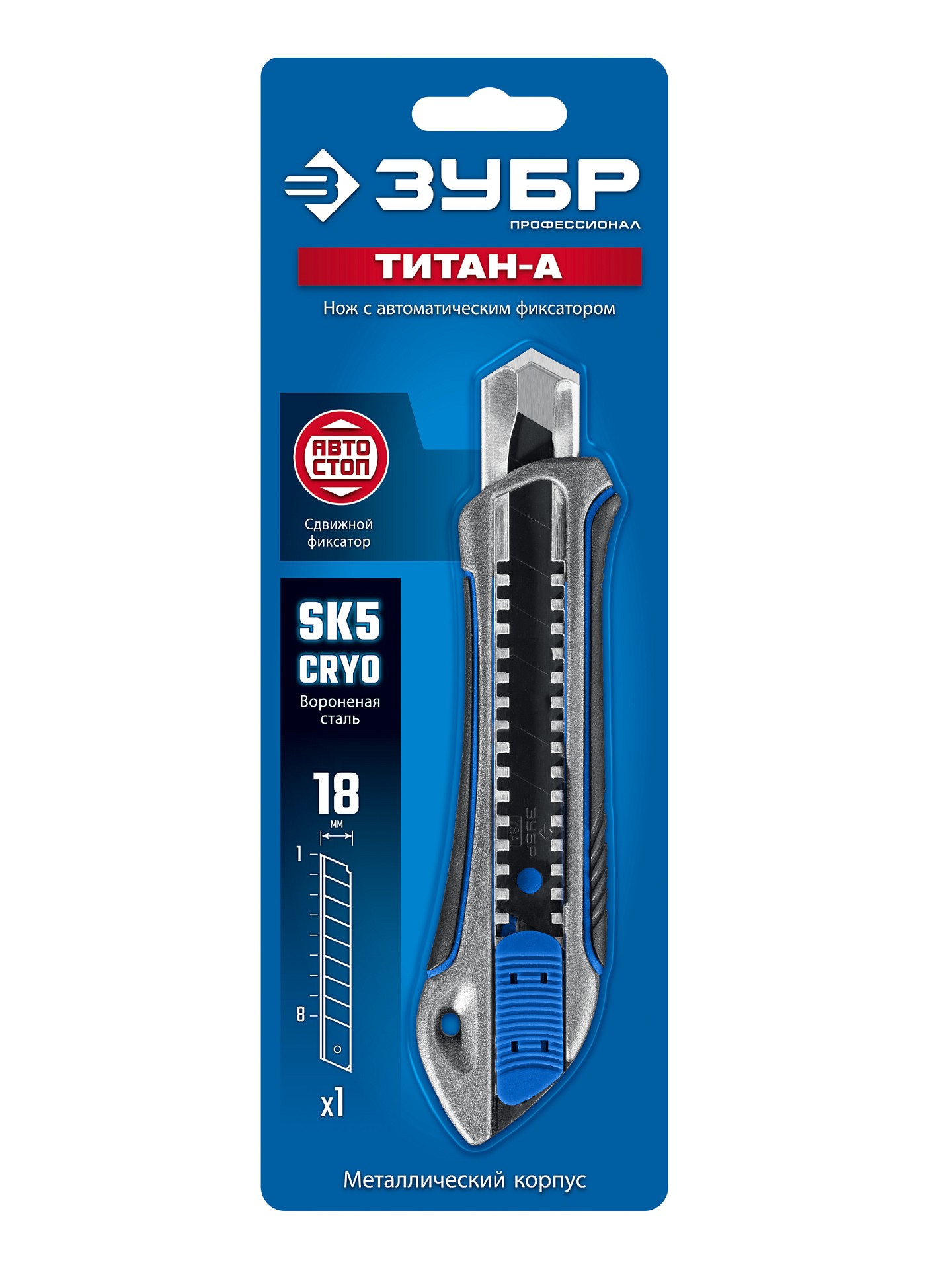 Принадлежности для ЗУБР Титан-А, 18 мм, металлический обрезиненный нож с автостопом, Профессионал (09171):