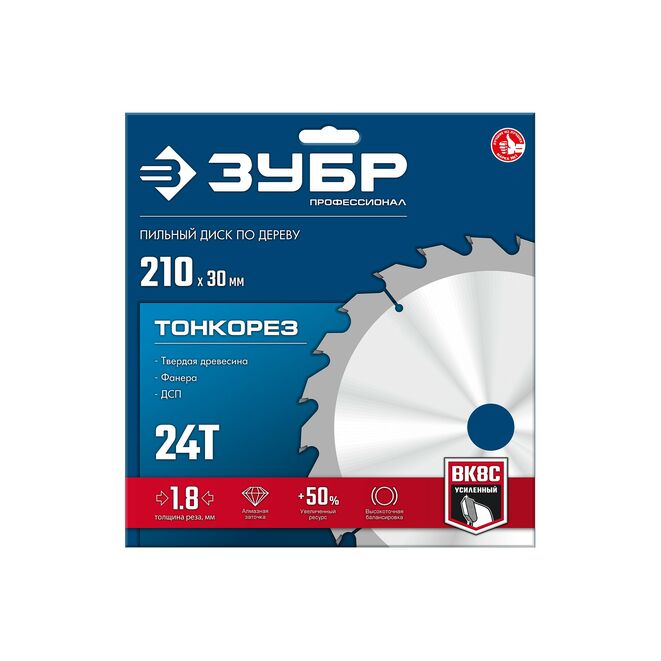 ЗУБР Тонкорез 210х30 x 1.8 мм, 24Т, диск пильный по дереву, тонкий рез, Профессионал (36933-210-30-24)