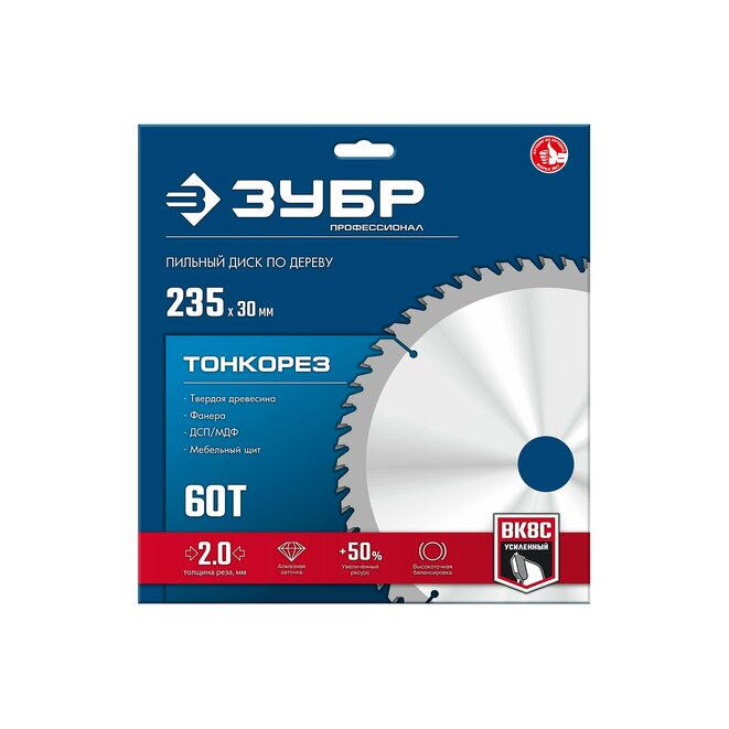 ЗУБР Тонкорез 235х30 x 2.0 мм, 60Т, диск пильный по дереву тонкий рез, Профессионал (36933-235-30-80)