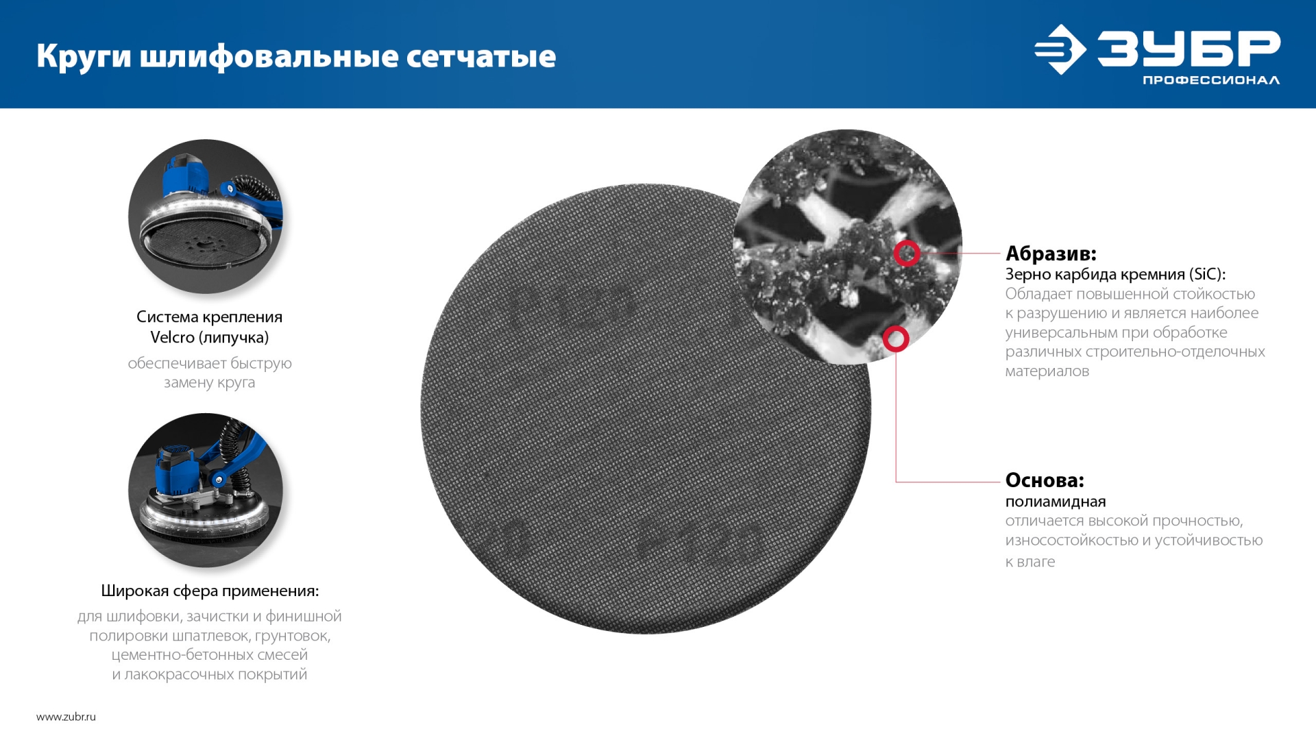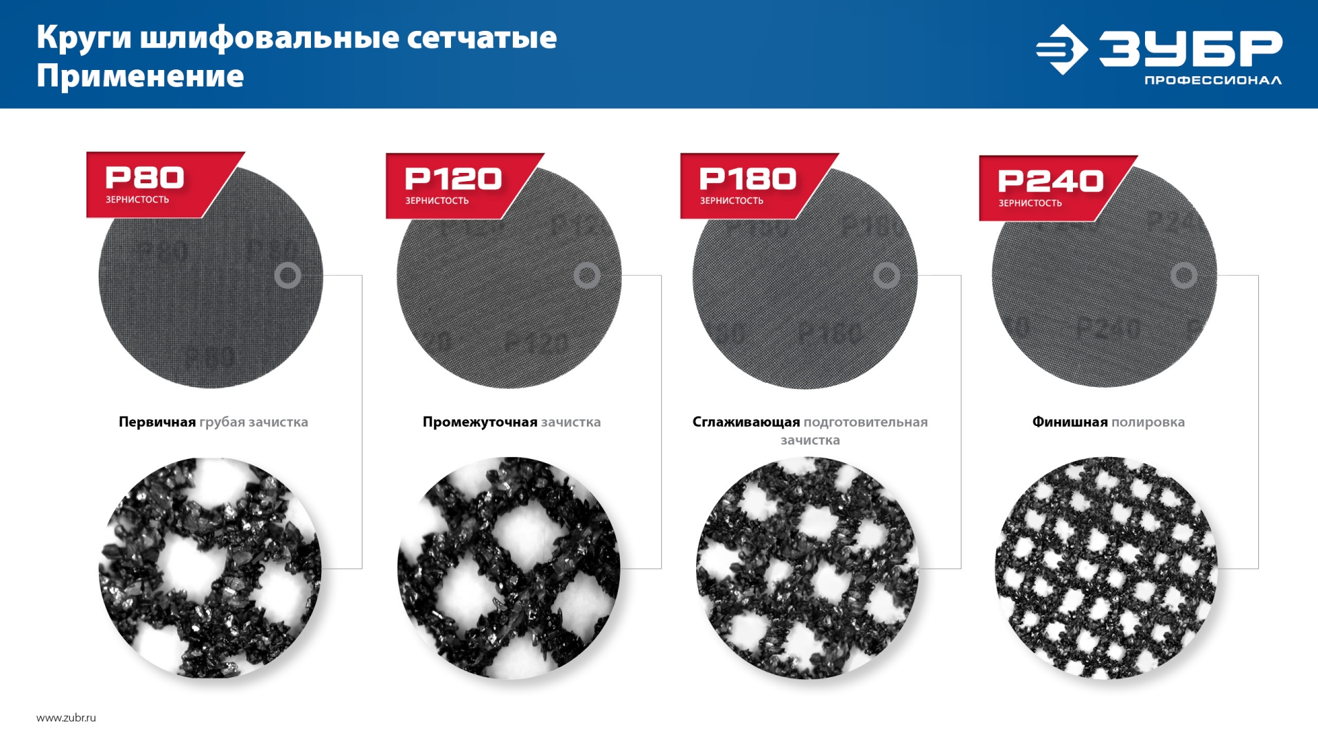 Основными преимуществами шлифовальных сетчатых кругов ЗУБР ″СЕТКА″ является их минимальаня забиваемость в процессе работы, а также уникальная возможность промывания водой по окончании отделочных работ по грунтовкам, шпатлёвкам и ЛКП.Применение