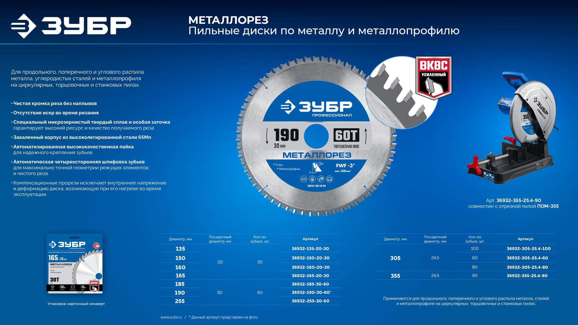 Для продольного, поперечного и углового распила металла, сталей и металлопрофиля на циркулярных, торцовочных и станковых пилах.Дополнительная информация