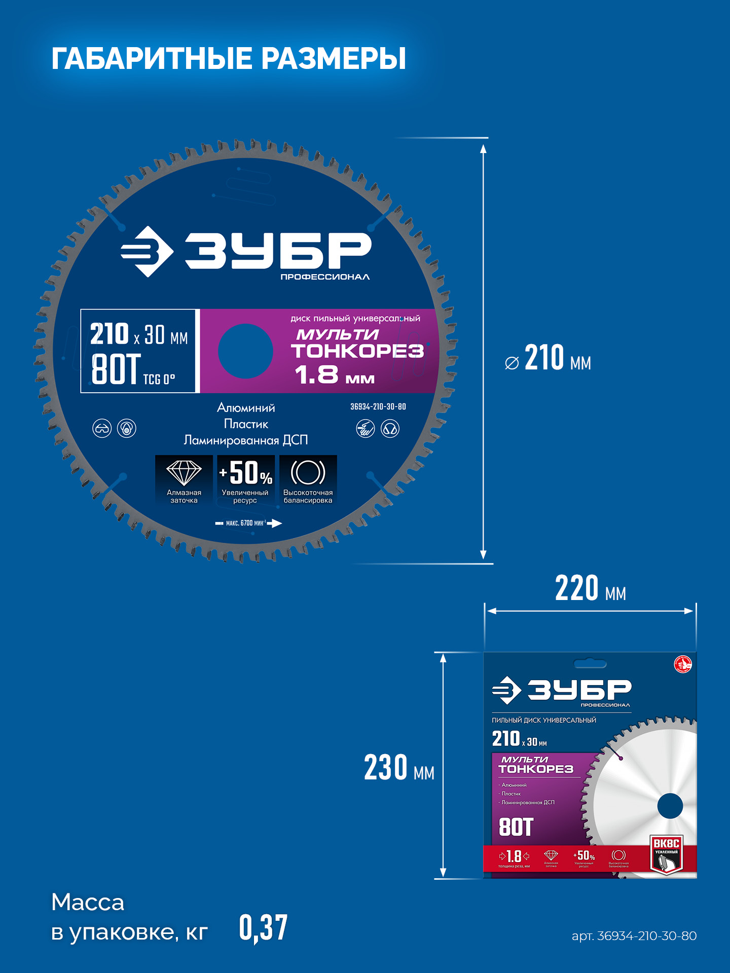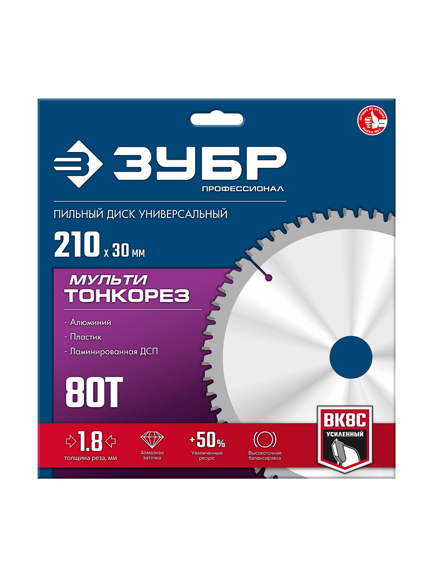ЗУБР Мульти Тонкорез 210х30 x 1.8 мм, 80Т, диск пильный универсальный, тонкий рез, Профессионал (36934-210-30-80)